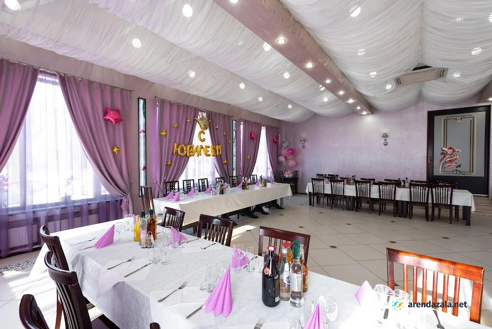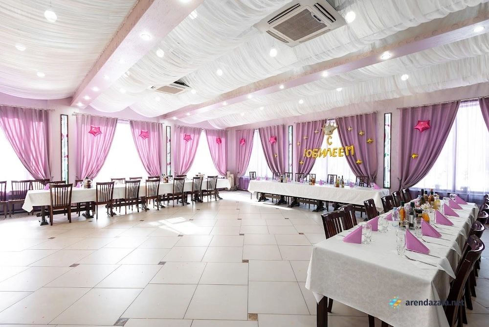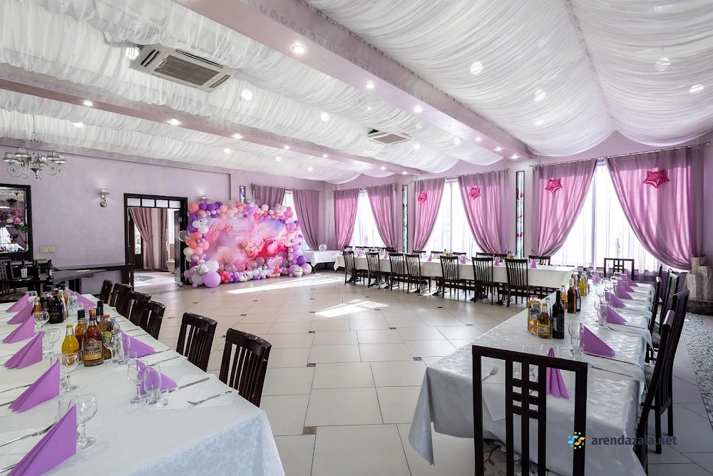 Зал «Сиреневый» предлагает гостям уютную и изысканную атмосферу. Внимательный персонал обеспечивает высокий уровень обслуживания, а интересное меню порадует разнообразием блюд. Ухоженная территория, чистота и наличие удобных санитарных комнат создают комфортные условия для посетителей. Светлый и просторный банкетный зал идеально подходит для проведения торжественных мероприятий, таких как свадьбы, юбилеи и праздники, а специально оборудованная фотозона позволяет запечатлеть яркие моменты.