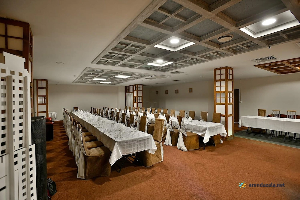 В современном просторном зале с панорамными окнами, открывающими потрясающий вид, гостей встречает приветливый персонал, обеспечивающий безупречное обслуживание. Изысканная подача блюд высочайшего качества, восхитительный вкус изысканных кулинарных шедевров, вкупе с внимательностью к деталям и комплиментами от заведения, создают неповторимую атмосферу гостеприимства. Стильный интерьер с новой мебелью, уютным текстилем и сценой для выступлений идеально подходит для проведения мероприятий любого формата.