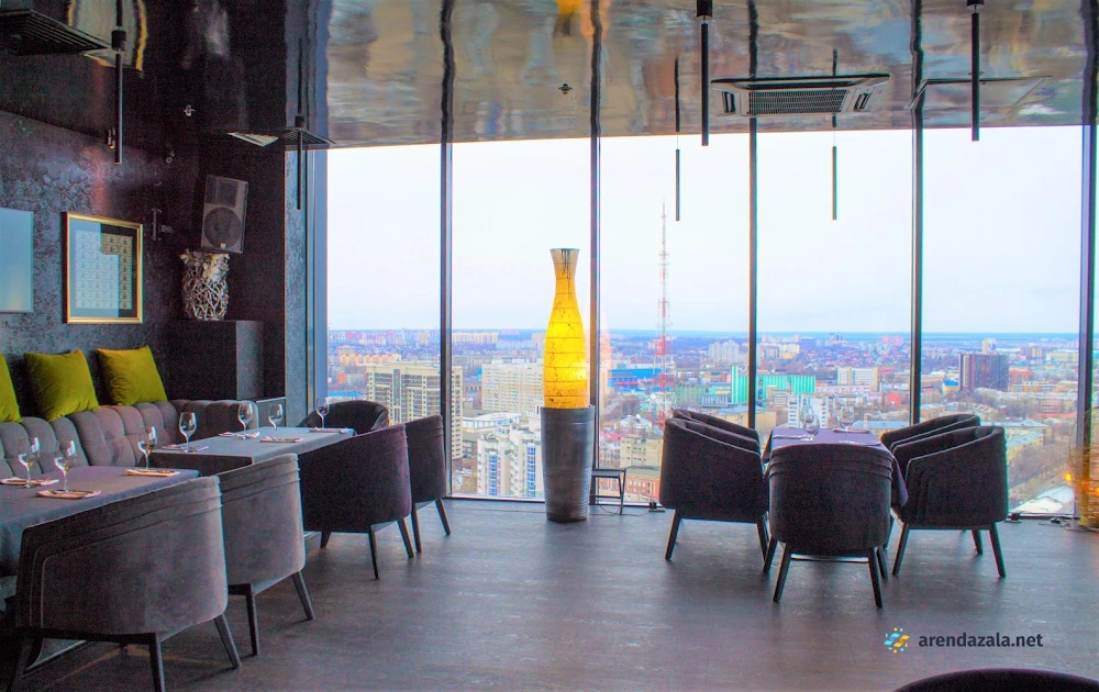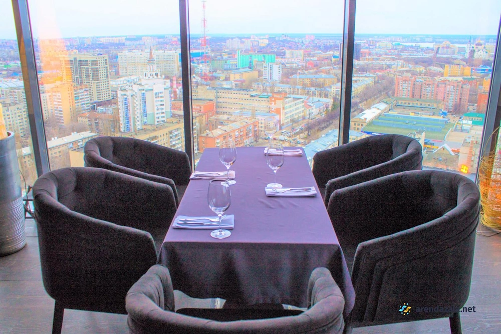 Зал вместимостью до 35 человек предлагает уютную атмосферу, где посетители могут расслабиться и насладиться вкусными блюдами и напитками. Отличительной особенностью заведения являются потрясающие виды на город, открывающиеся из панорамных окон. Гости высоко оценивают разнообразное меню с акцентом на качественной кухне, богатый выбор коктейлей и кальянов, а также профессиональное обслуживание персонала. В будние дни здесь царит спокойная обстановка, идеальная для деловых встреч или семейных посиделок, а по выходным заведение превращается в оживленное место для вечеринок и танцев.